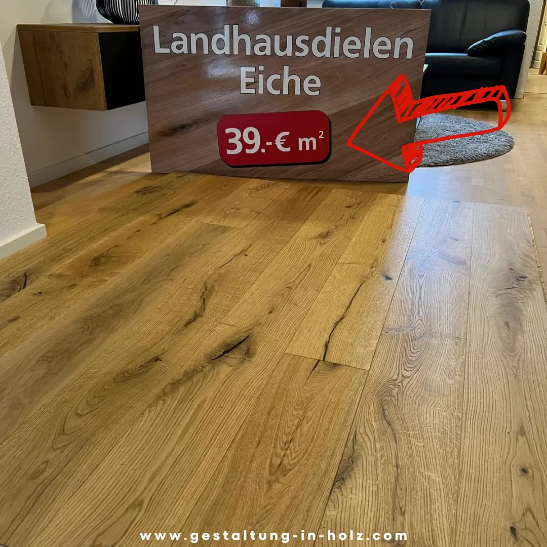 Unsere exklusiven Eiche Landhausdielen gibt es jetzt für nur 39 € pro Quadratmeter! Echtes Holz, zeitloser Stil und eine Qualität, die überzeugt. Dieser Boden verleiht Ihrem Raum nicht nur Charakter, sondern auch echten Wert. Doch Achtung: Diese Aktion ist streng limitiert. Wenn weg, dann weg!